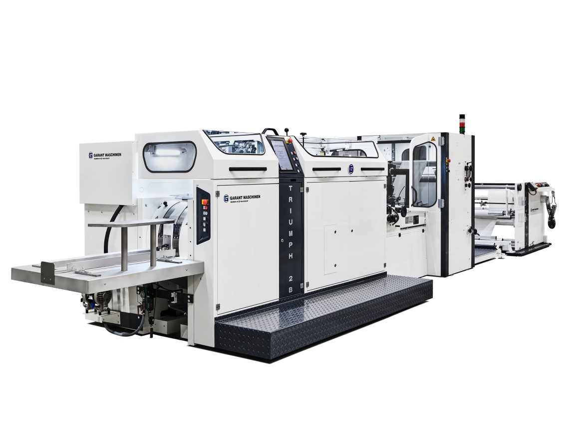 The TRIUMPH 2B is a block bottom bag machine which is particularly well suited for the production of small format block bottom bags. GARANT has continuously developed the TRIUMPH 2B and optimally adapted it to the growing requirements of the market. Its current equipment and the still exemplary robust design make the TRIUMPH 2B the most popular machine for the production of small-format block bottom bags even today.